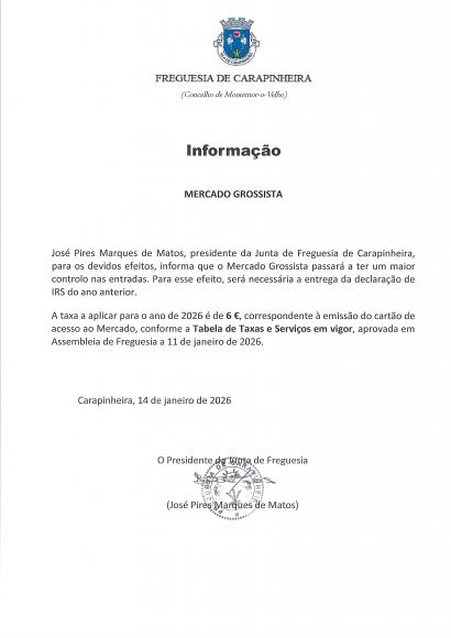 © 2026 Junta de Freguesia de Carapinheira. Todos os direitos reservados | Termos e Condições | * Chamada para a rede/móvel fixa nacional