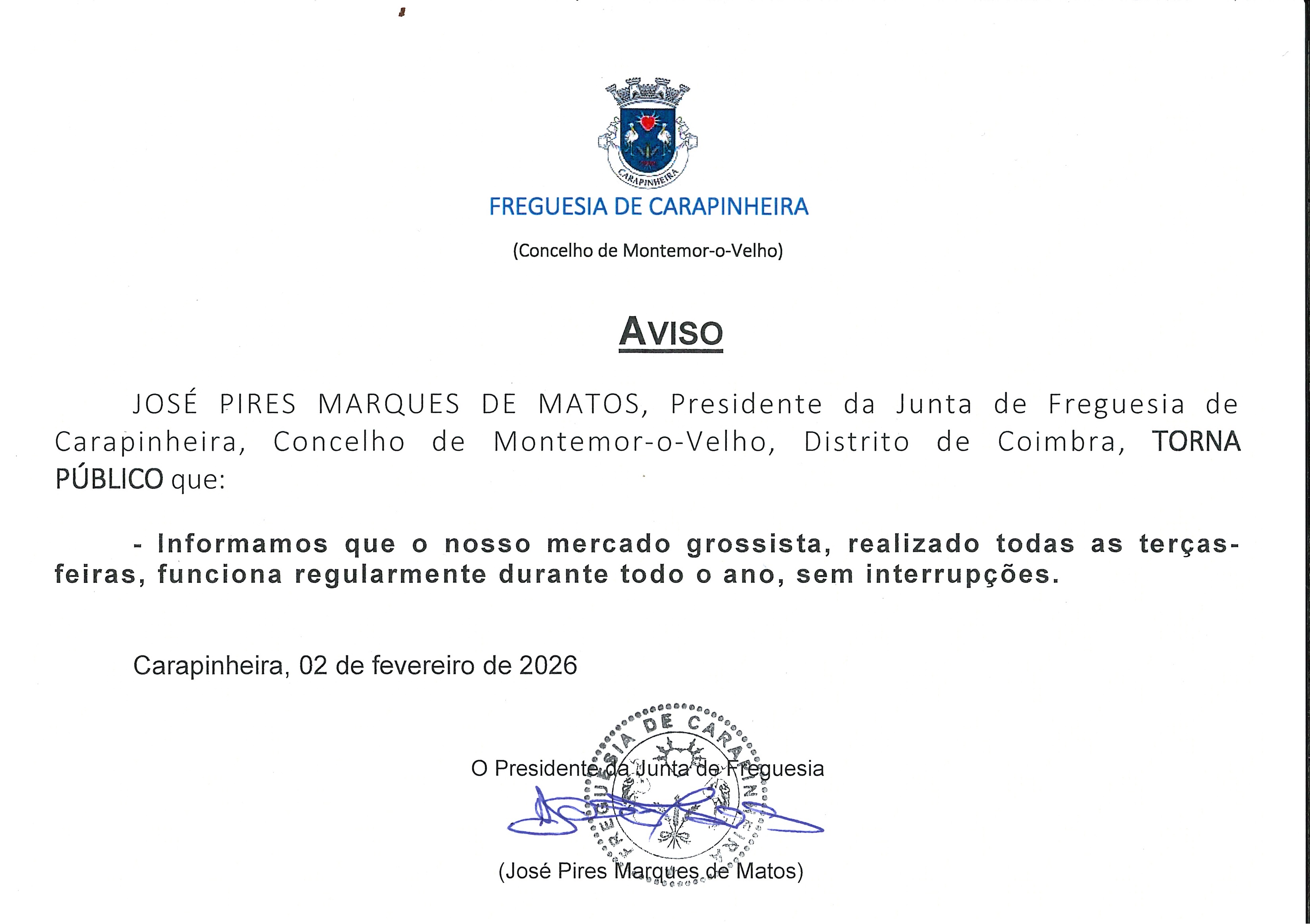 É com enorme honra que assumo a presidência da Junta de Freguesia de Carapinheira, guiado por um profundo sentido de responsabilidade e pelo compromisso de trabalhar por uma comunidade mais igualitária, livre e desenvolvida.
